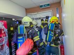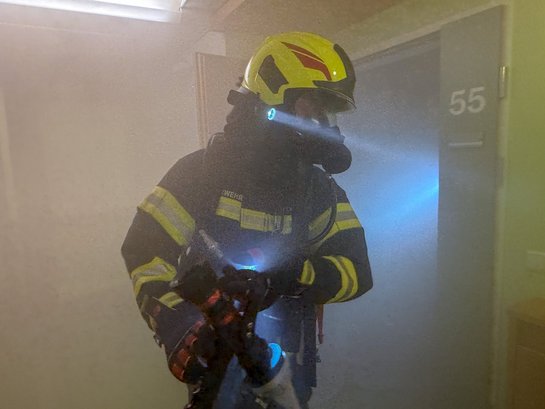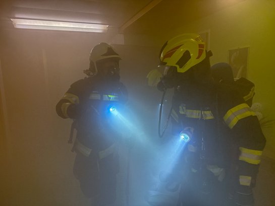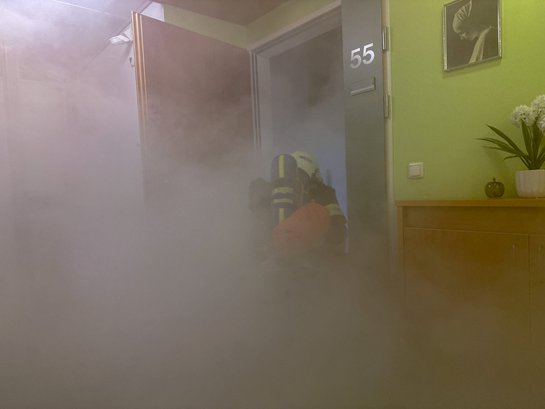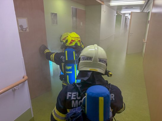 Ein Zimmer im ersten Stock war mit einer Nebelmaschine komplett „verraucht“ worden. Der Rauch breitete sich auf den Zimmertrakt aus. Aufgrund dieser Situation wurden die Bewohner des Seniorenwohnheims durch das Pflegepersonal und die Feuerwehrleute ins Freie gebracht. Ein Atemschutztruppe rettete den Bewohner des brennenden Zimmers mit eine Tragetuch über das Stiegenhaus. Weitere Atemschutztrupps kontrollierten die Zimmer und Räume, damit sichergestellt war, dass das gesamte Personal und alle Bewohner evakuiert worden waren.