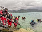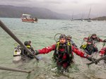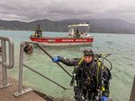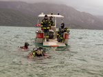 Die in rund 16 Metern Tiefe „versteckte“ Tauchpuppe konnte durch die Suchkette der Taucher gefunden werden. Die Feuerwehrboote aus Vöcklabruck und Seewalchen unterstützten die Taucher am Wasser.